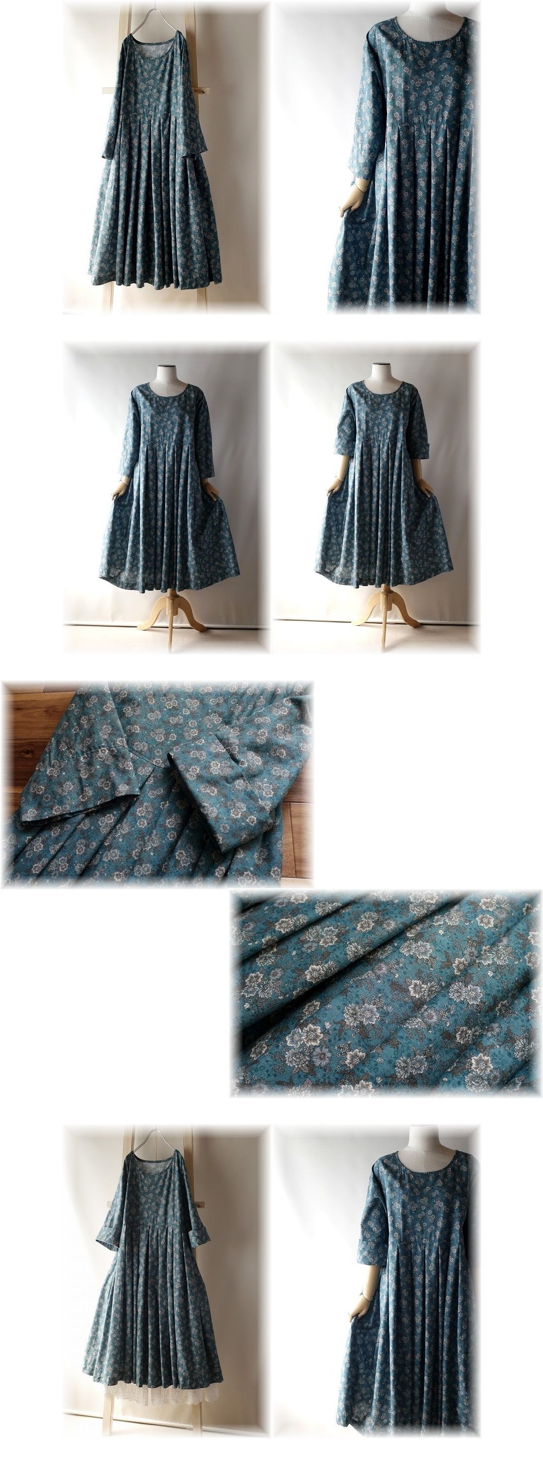 *コットンリネンオリエンタルフラワー/ピーコック タックOP*