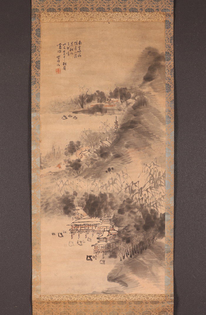 シミ、折れ、少しイタミ、表具に虫食い穴があります。