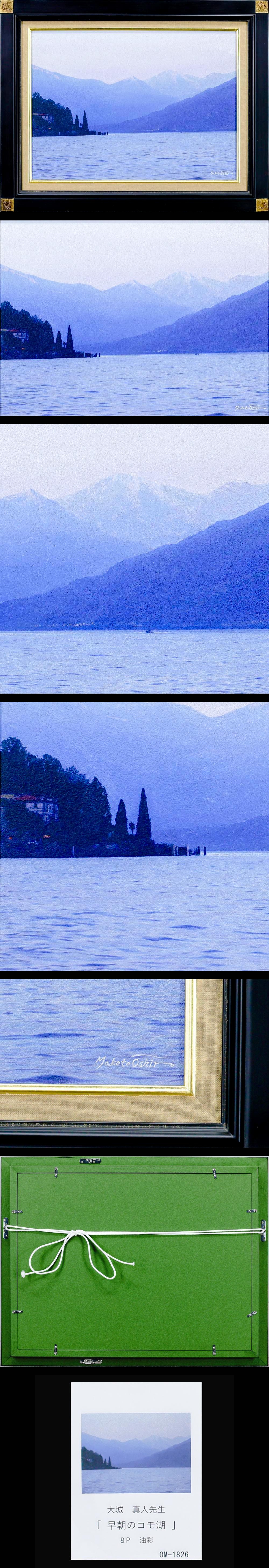 【真作】【WISH】大城真人「早朝のコモ湖」油彩 8号 ◆静寂 湖畔美情景 〇リアリズム巨匠 フランス展最高賞 フランス在住 #25032094