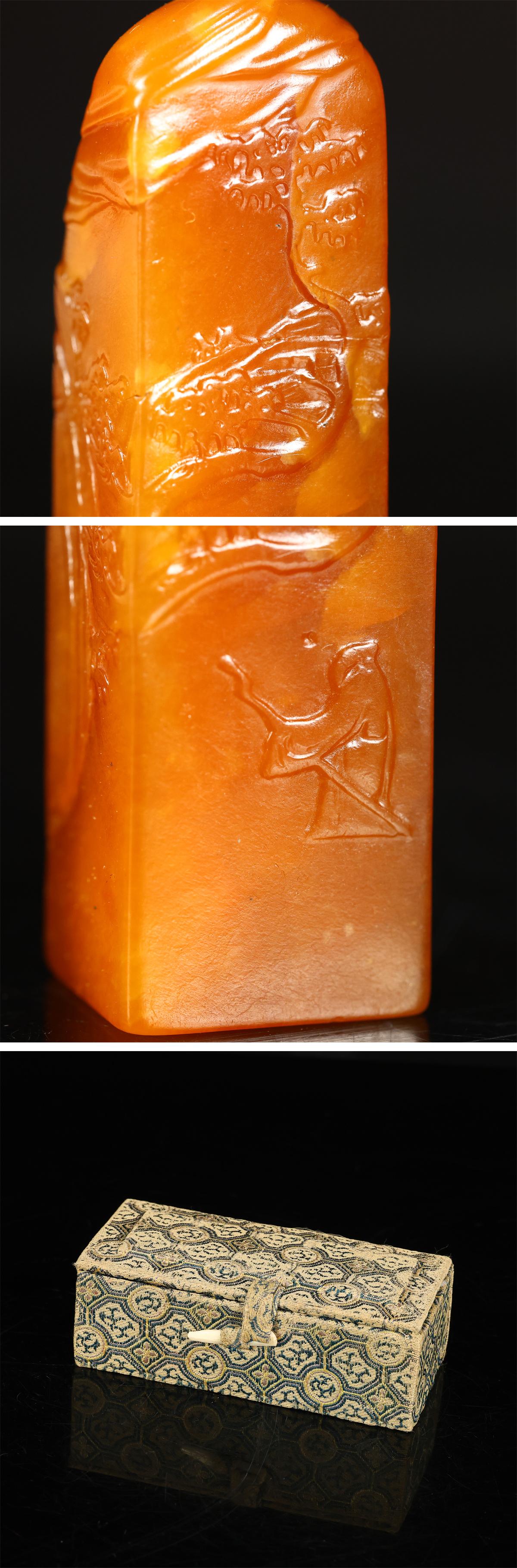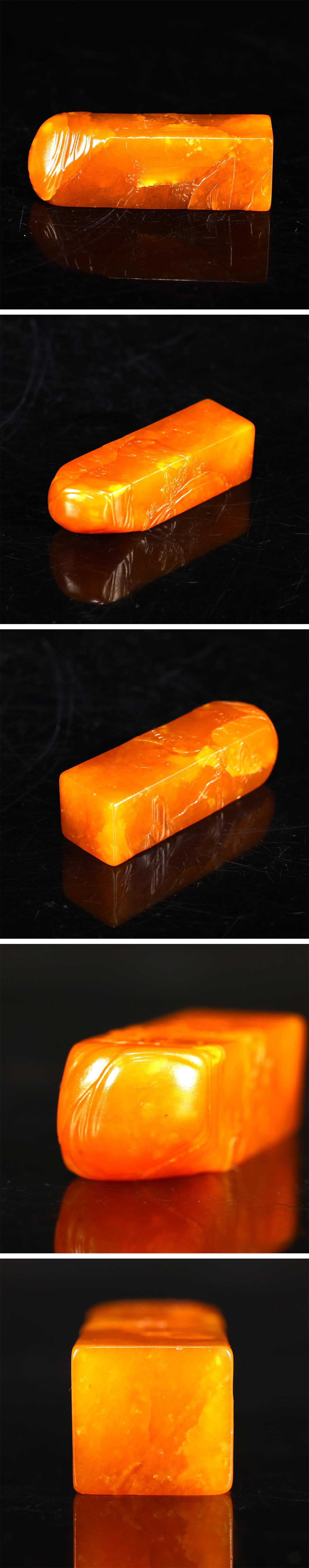 【吉】IB229 唐物 寿山石 【田黄石】 凍石 印材 印章 高6.2㎝ 重53g/箱付 美品G!