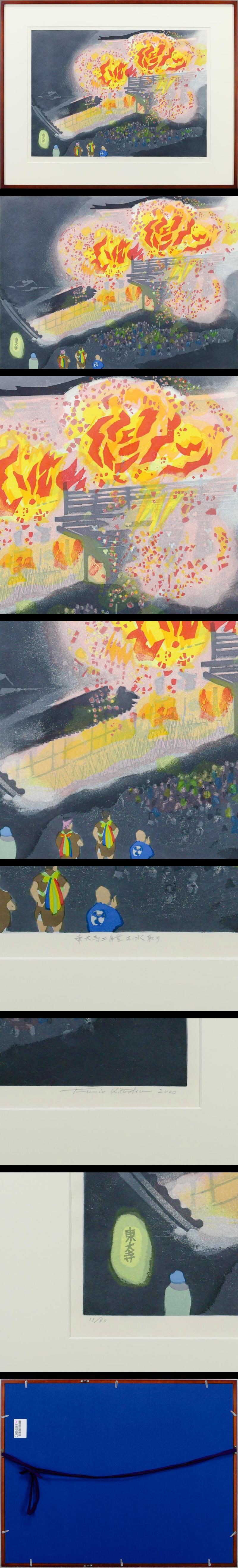 【真作】【WISH】北岡文雄「東大寺二月堂お水取り」木版画 10号大 2000年作 直筆サイン 〇光と風の版風景 #25092867