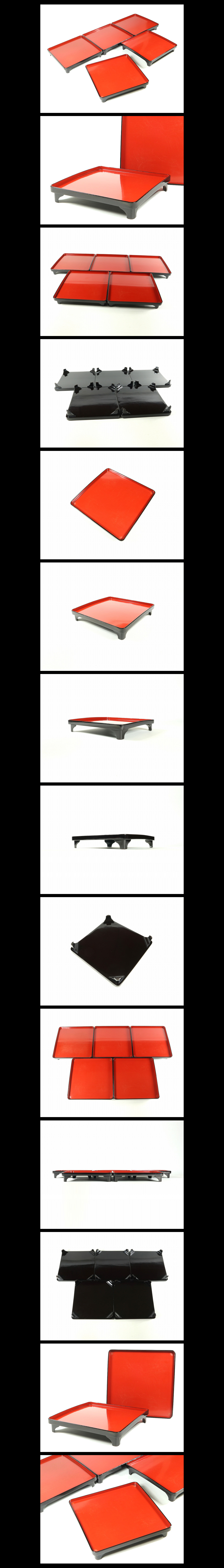 ●c104●美色【猫足四方膳5客 塗分紅溜黒金縁/折敷四つ脚酒器盆菓子盆】検お茶会煎茶道具茶懐石紅春慶輪島塗●西瓜●