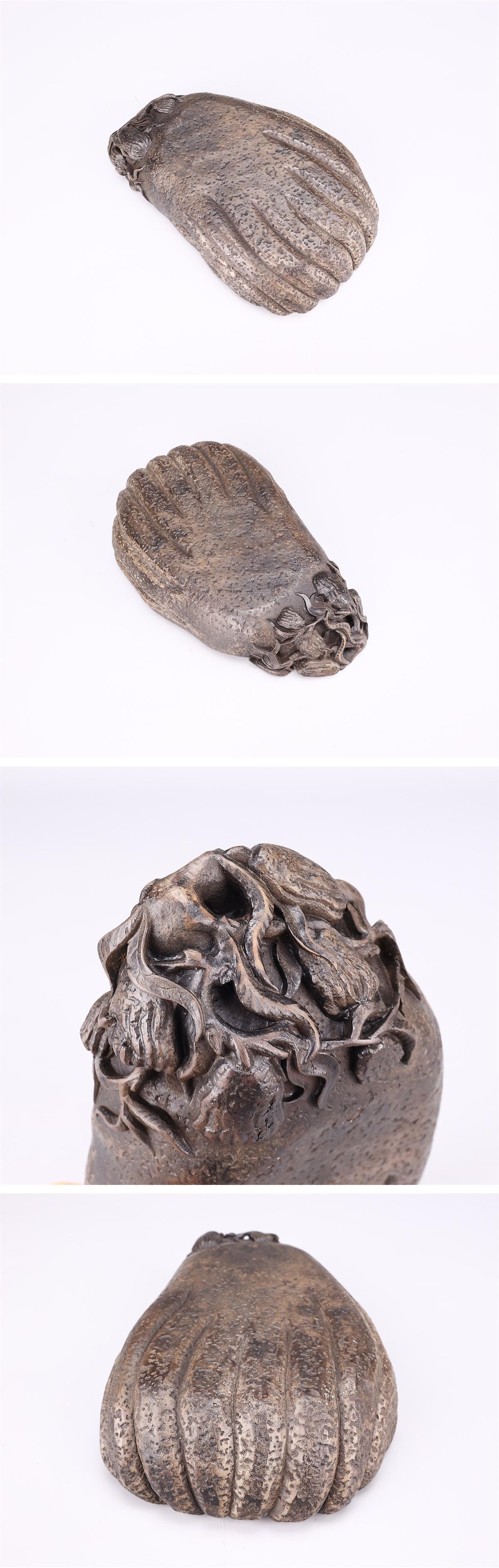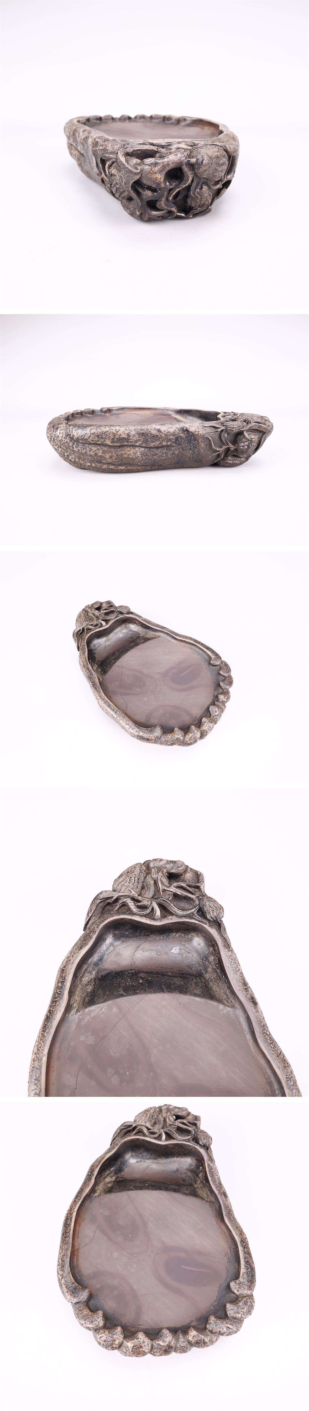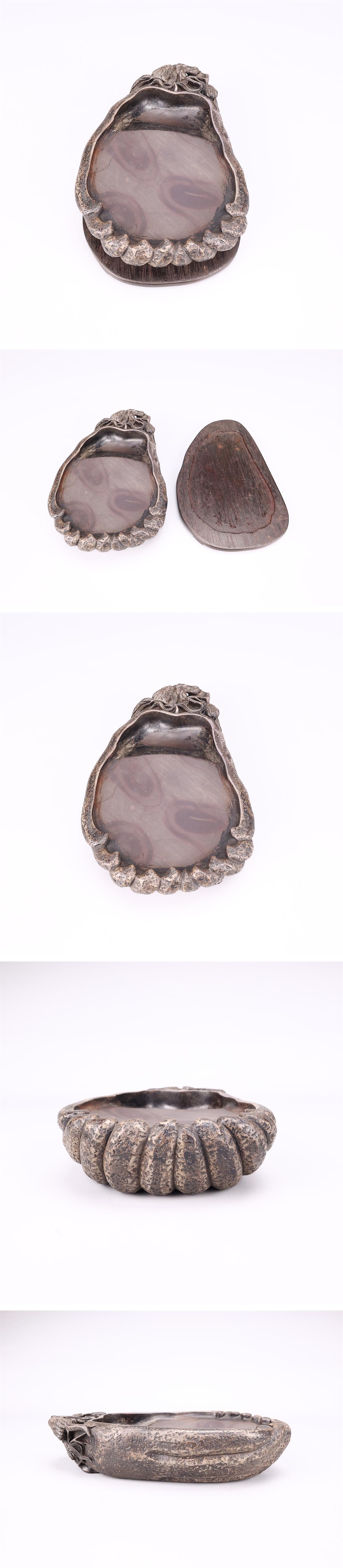 【吉】BB038 唐物 清代 【天然端渓石製】 書道具 佛手 端渓硯 幅21.5×13.5㎝ 重1915g/木台付!