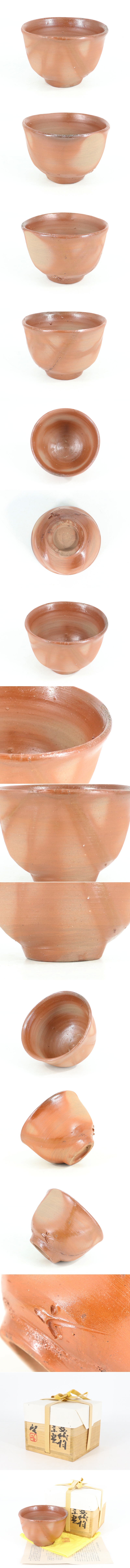【蔵】備前焼 人間国宝 藤原啓 作 緋襷茶碗 茶碗 茶道具 栞 共布 共箱 本物保証 Y2380M