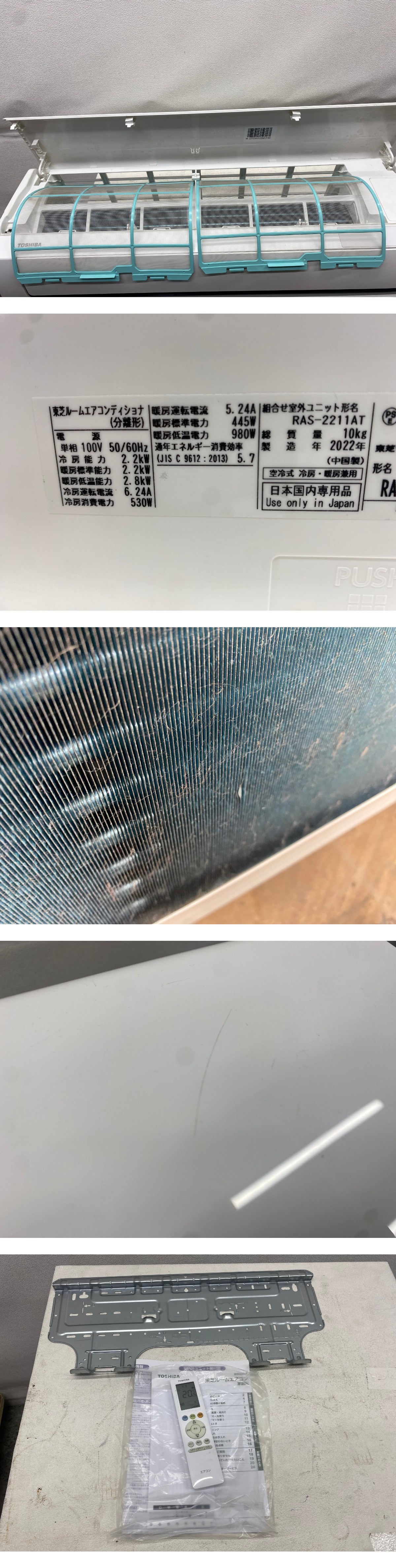【1円スタート】大阪発 TOSHIBA ルームエアコン 室内機室外機セット RAS-2211T 2022年製 IMA