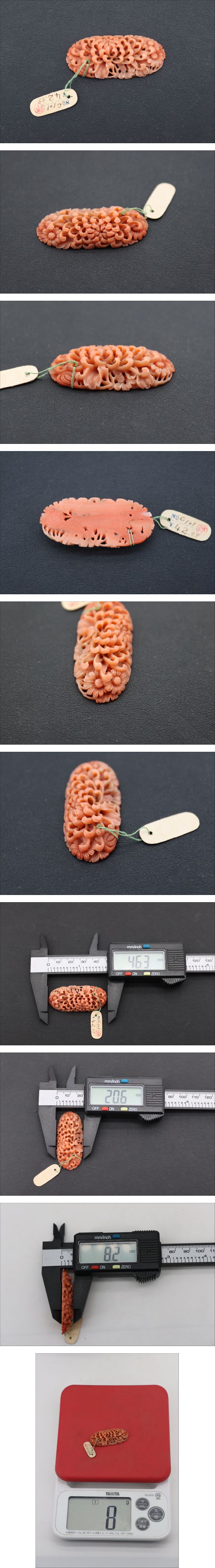 送料230円 天然赤珊瑚 本珊瑚 彫花 細密彫刻 重量約8g 46.3*20.6*8.2mm ②